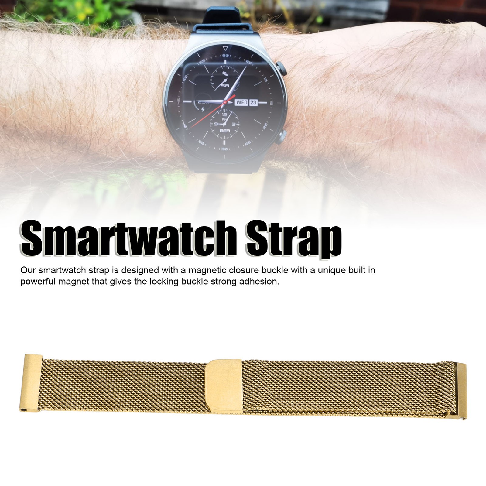 (Gold) Smartwatch Band 18mm Stainless Steel Replacement Smartwatch Band
