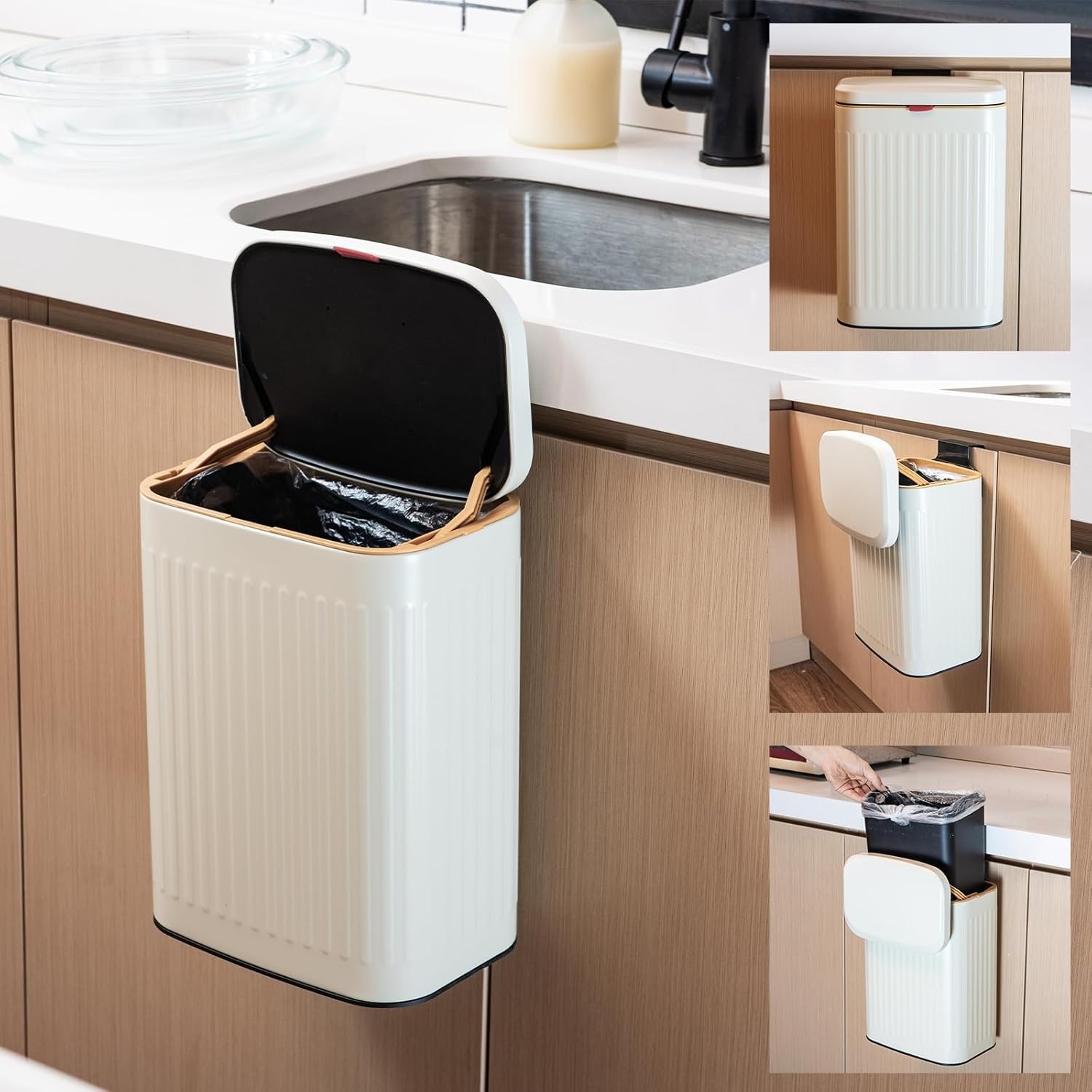 8L Kitchen Bin, Under Counter Stainless Steel Trash Can, Hanging Rubbish Bin, F