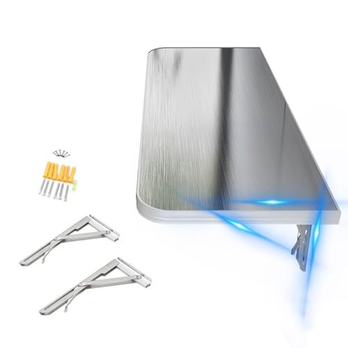 Folding Wall-Mounted Table - Space-Saving Stainless Steel Workbench with Smooth Rounded Corners for Kitchen & Office - Durable, Easy to Install