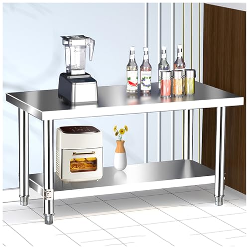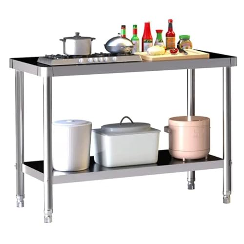 YIHANWUU Kitchen Workbench Double Level Adjustable Prep Table Stainless Steel Commercial Workbench Metal Table Open Storage Shelf with Adjustable Legs/60 * 40 * 80Cm
