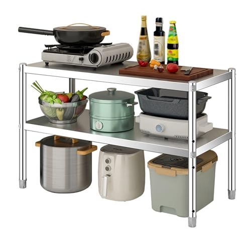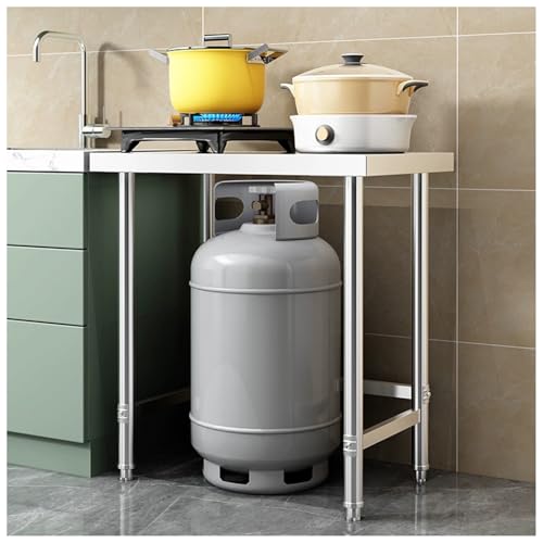YIHANWUU Thickened Stainless Steel Floor Shelves Kitchen Chopping Board Metal Table Double Stainless Steel Workbench Multifunctional Sturdy Preparation Table Laminate Adjustable/50 * 50 * 80Cm