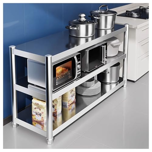 YIHANWUU Kitchen Stainless Steel Workbench Three Tier Multifunctional Preparation Table Practical Open Storage Shelves Large Storage Combination Workbench with Adjustable Tiers/100 * 30 * 80Cm