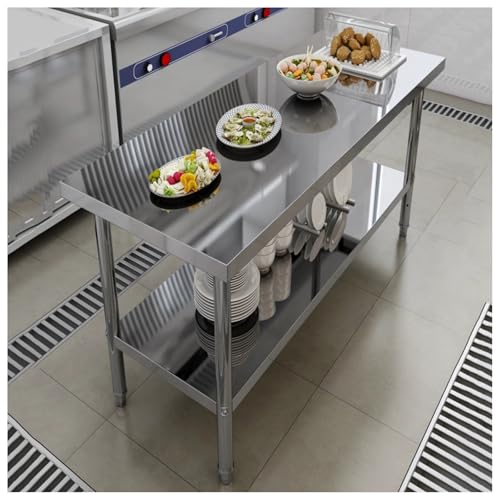 LYCDPYCD Double Workbench Commercial Stainless Steel Workbench Open Floor Standing Shelves Metal Table is Sturdy and Stable Suitable for Kitchen Restaurant Outdoor Warehouse