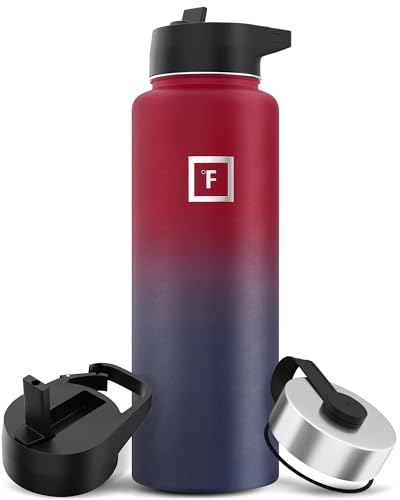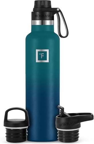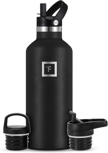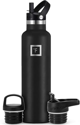 IRON °FLASK Insulated Water Bottle with Straw Lid Narrow - 710ml (3 Lids) Cold 24hrs & Hot 12hrs Drinks Double-Walled Stainless Steel Metal Leakproof Travel Sports Gym Camping & Hiking Hydration Flask