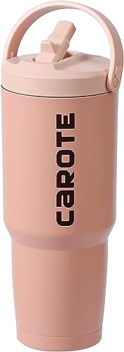 CAROTE Water Bottle with Straw, Stainless Steel Insulated Water Flask, Double Walled Vacuum Drink Flask for Hot Cold Drinks, Leak Proof, Sweat Free, 32oz, 960ml, Pink