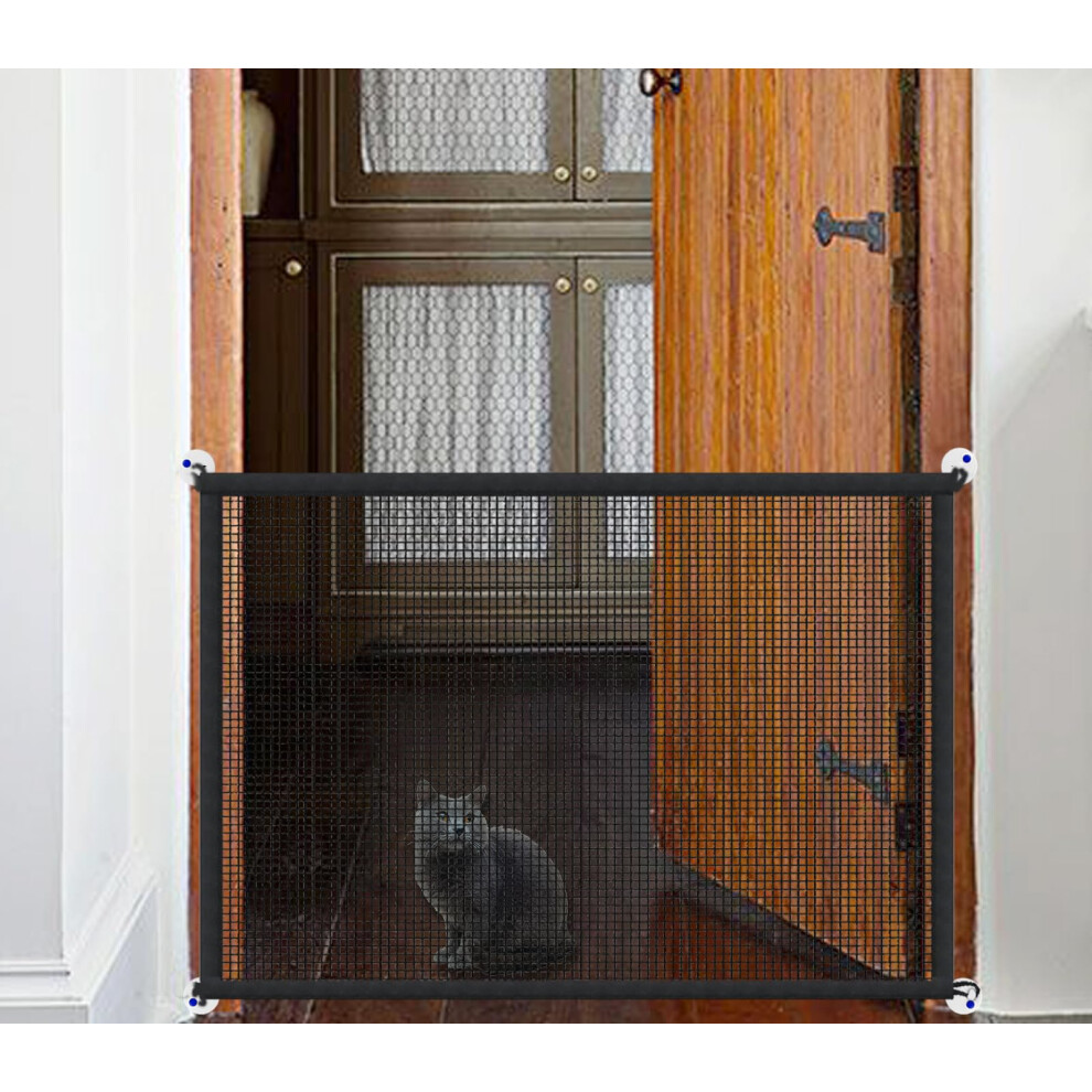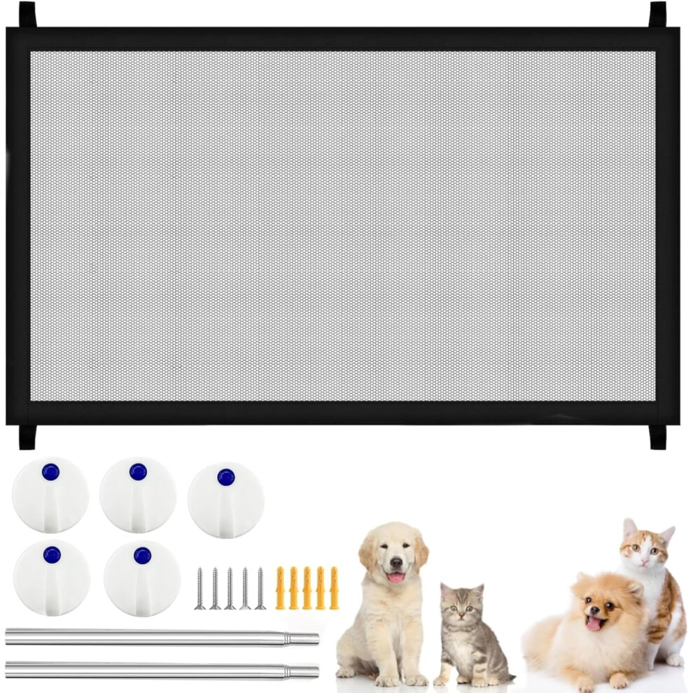 Portable Stair Gate for Dogs Indoor Magic Pet Gates for The House Doorway Upgraded Mesh 110x78cm Safety Puppy Fence Enclosure, Black