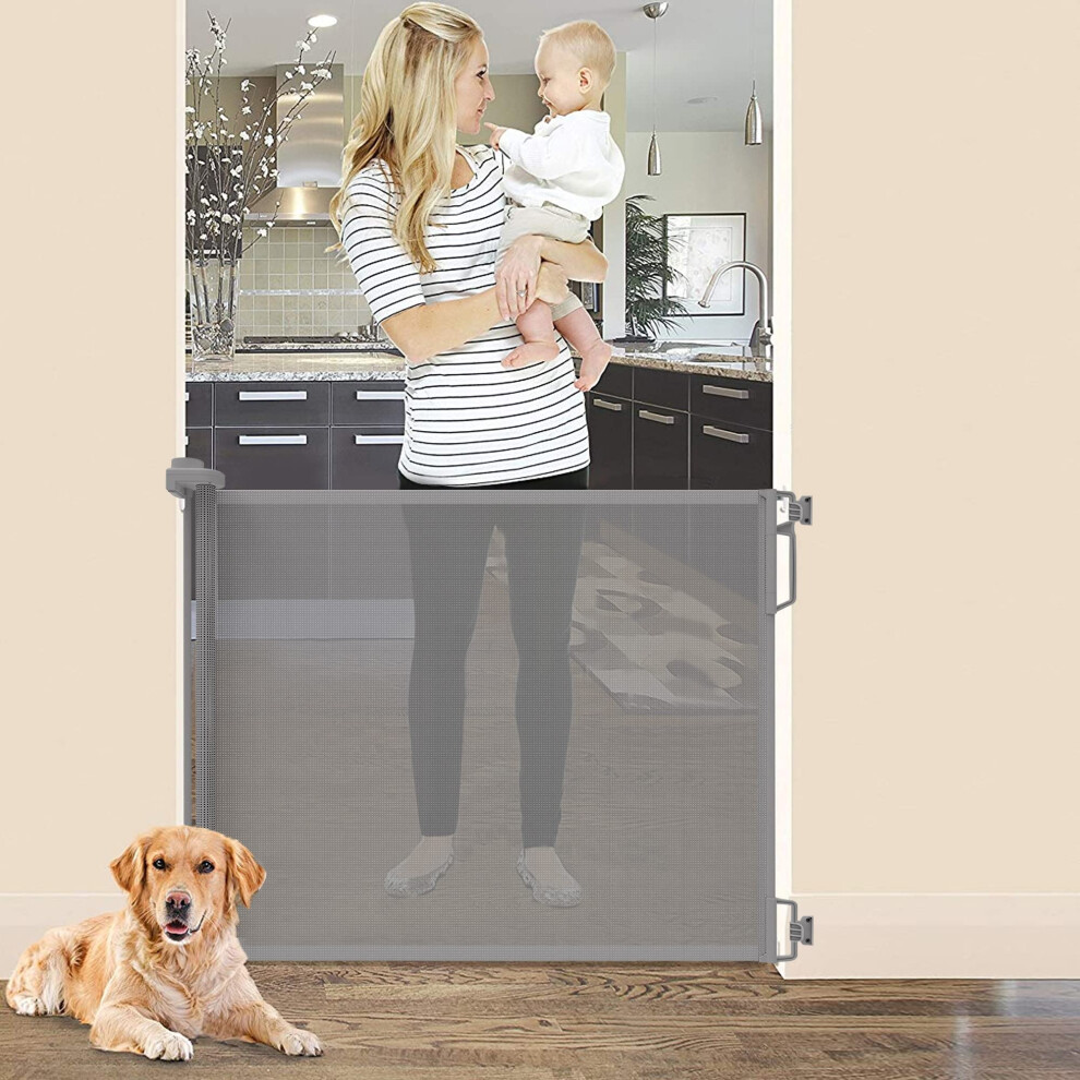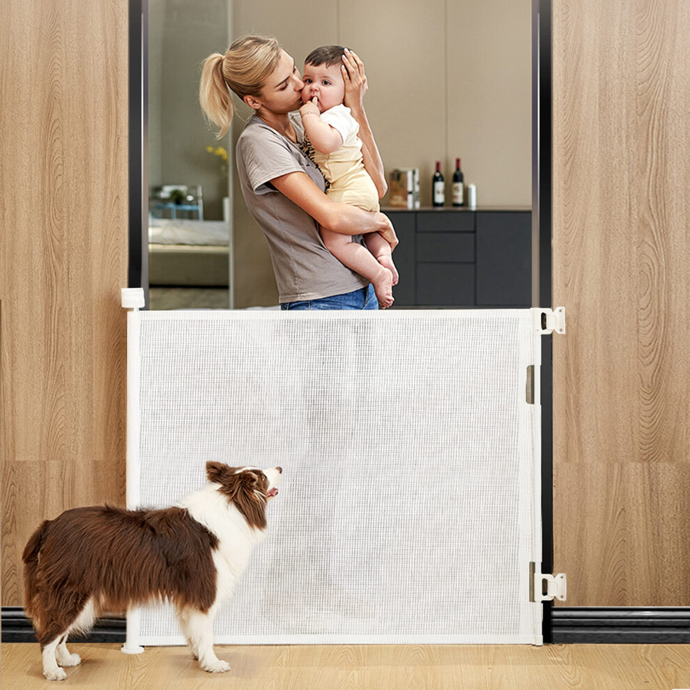 Baby Gate Retractable Mesh Stair Gate for Dogs Portable 0-140 cm Extra Wide Safety Gate Soft Non-toxic Mesh Gates Safe for Stairways & Hallways,