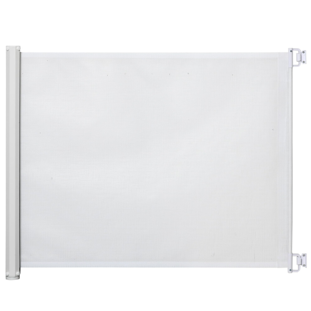 PawHut Retractable Stair Gate for Dogs, Pet Mesh Safety Gate Extends up to 115cm for Doorways Indoor- White
