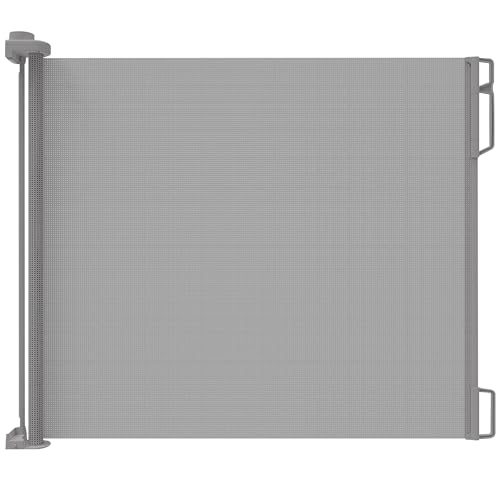 CROWNSHOP Stair Gate, Retractable Stair Gates for Baby and Dogs, Extends up to 71" Wide, 33" Tall One Handed Operation, Baby Gate for Doorways/Hallways, Grey
