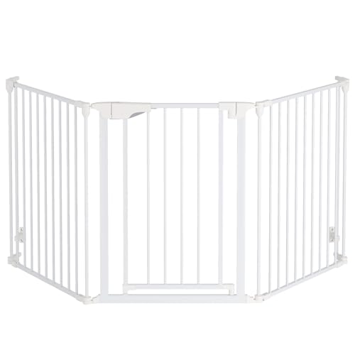 The Fellie Stair Gates for Dogs & Doorways, Foldable Dog Gate with Automatic Closing, Fire Guard Metal Playpen, Indoor Safety Barrier for Dogs/Pet/Child/Christmas Tree Fence, 213x75cm