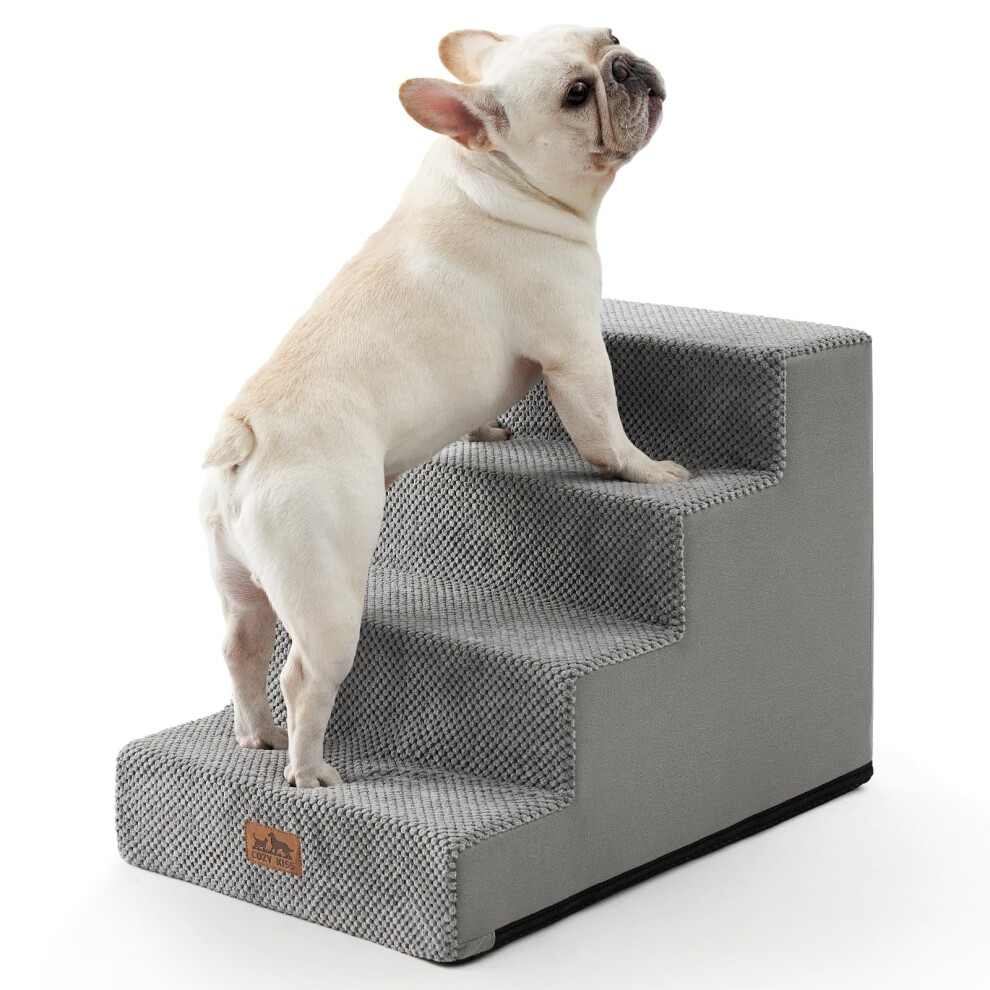 COZY KISS Wide Dog Stairs for Small Dogs, Pet Steps for Bed Sofa Car, Non-Slip Dog Stair for Old Cats, Puppy, Small Medium Dogs (Grey, 60x45x45cm, 4)
