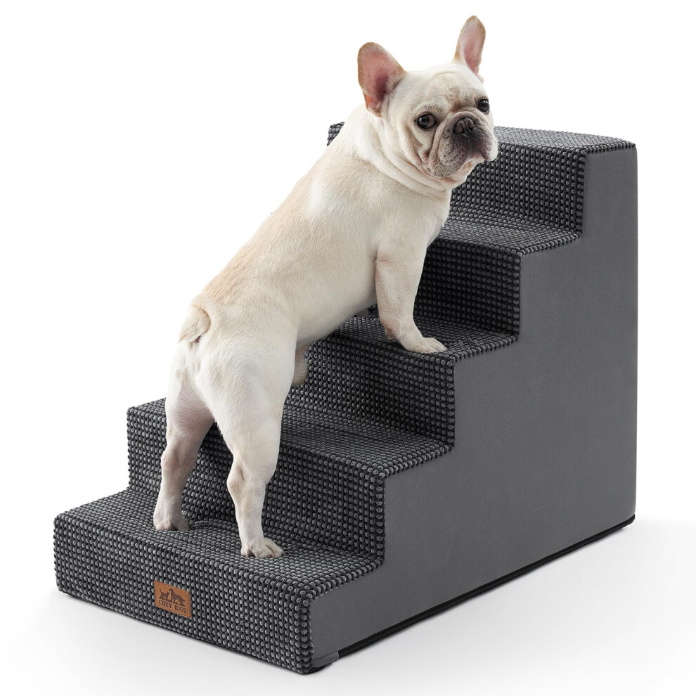 COZY KISS Wide Dog Stairs for Small Dogs, Pet Steps for Bed Sofa Car, Non-Slip Dog Stair for Old Cats, Puppy, Small Medium Dogs (Grey, 75x50x60cm, 5)