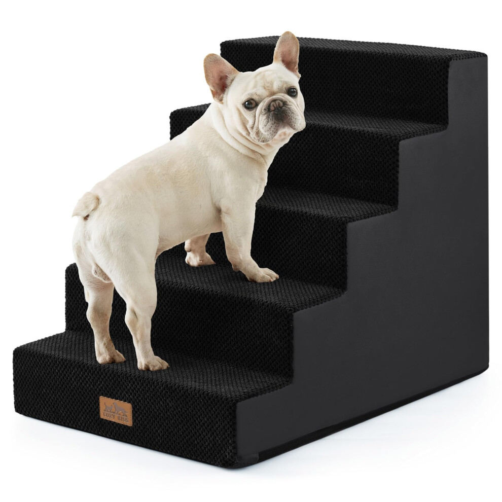 COZY KISS Wide Dog Stairs for Small Dogs, Pet Steps for Bed Sofa Car, Non-Slip Dog Stair for Old Cats, Puppy, Small Medium Dogs (Black, 75x50x60cm, 5)