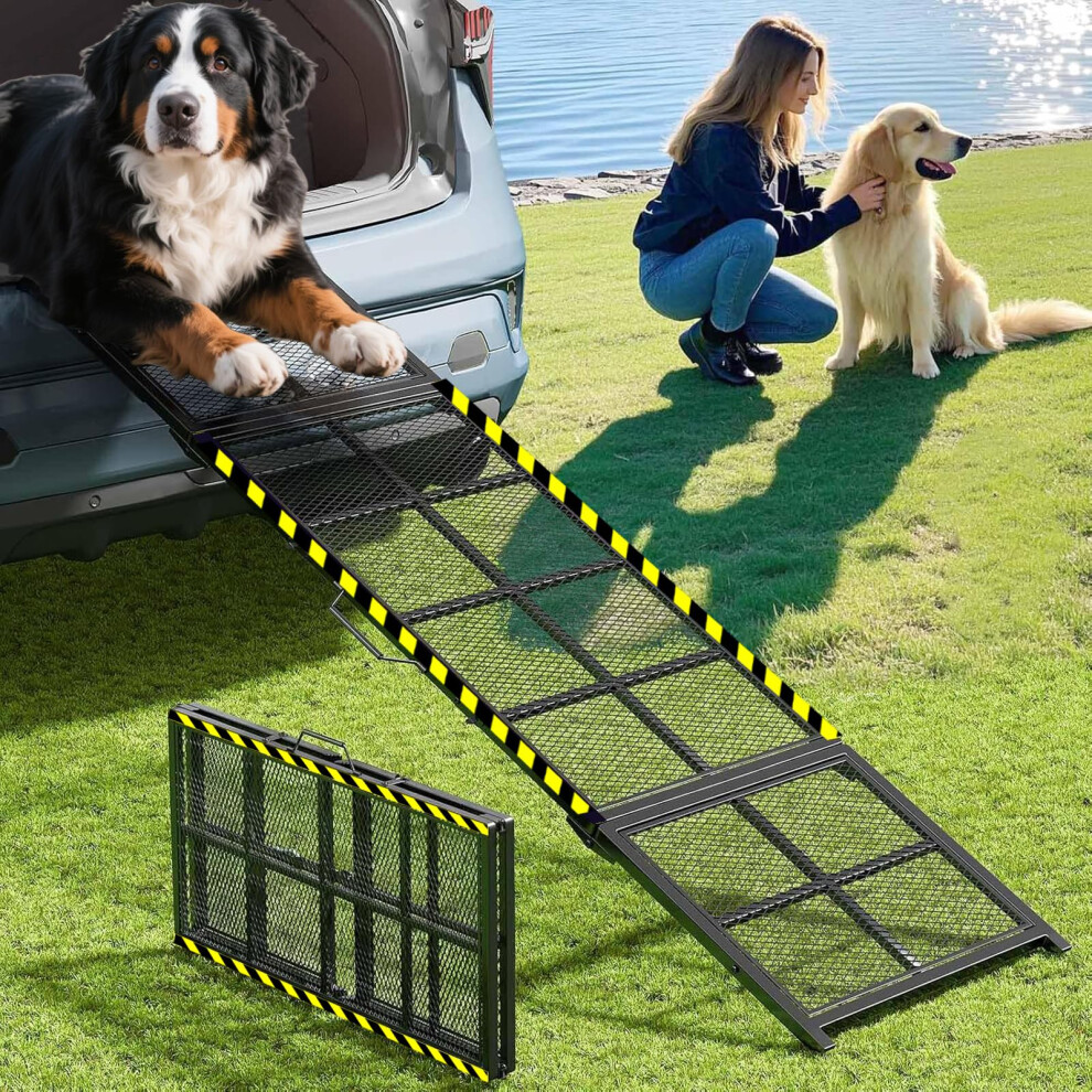 Extra Wide Foldable Dog Car Steps for Large Dogs, Portable Folding Pet Stair Ramp with Non-Slip Rug Surface?Lightweight Dog Ramps for Cars and