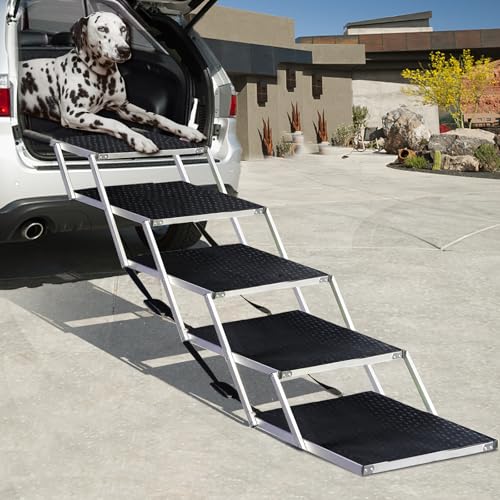 Uross Foldable Folding Dog Steps for Car 4 Steps - Collapsible Pet Sairs Ramp for Car and SUV, Aluminum Dog Ramp Stairs for Large Dogs,Telescoping Pet Step Stair Ladder for Truck
