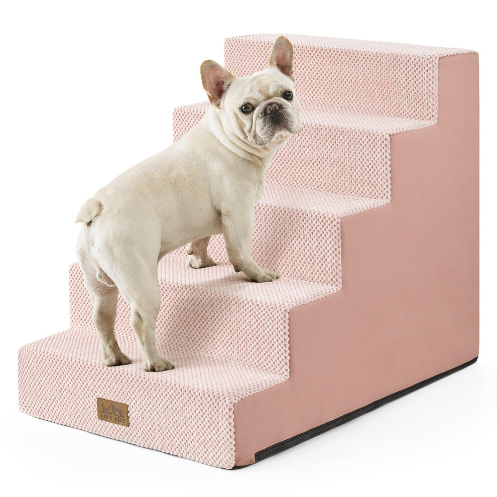 COZY KISS Wide Dog Stairs for Small Dogs, Pet Steps for Bed Sofa Car, Non-Slip Dog Stair for Old Cats, Puppy, Small Medium Dogs (Pink, 50x75x60, 5)