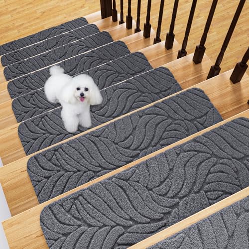 OJIA Non-Slip Carpet Stair Treads for Wooden Steps Set of 15, 30''X8'' Indoor Runner Resistant Rugs Rubber Safety Mats for Dogs, Kids & Elders, Stairway Grip