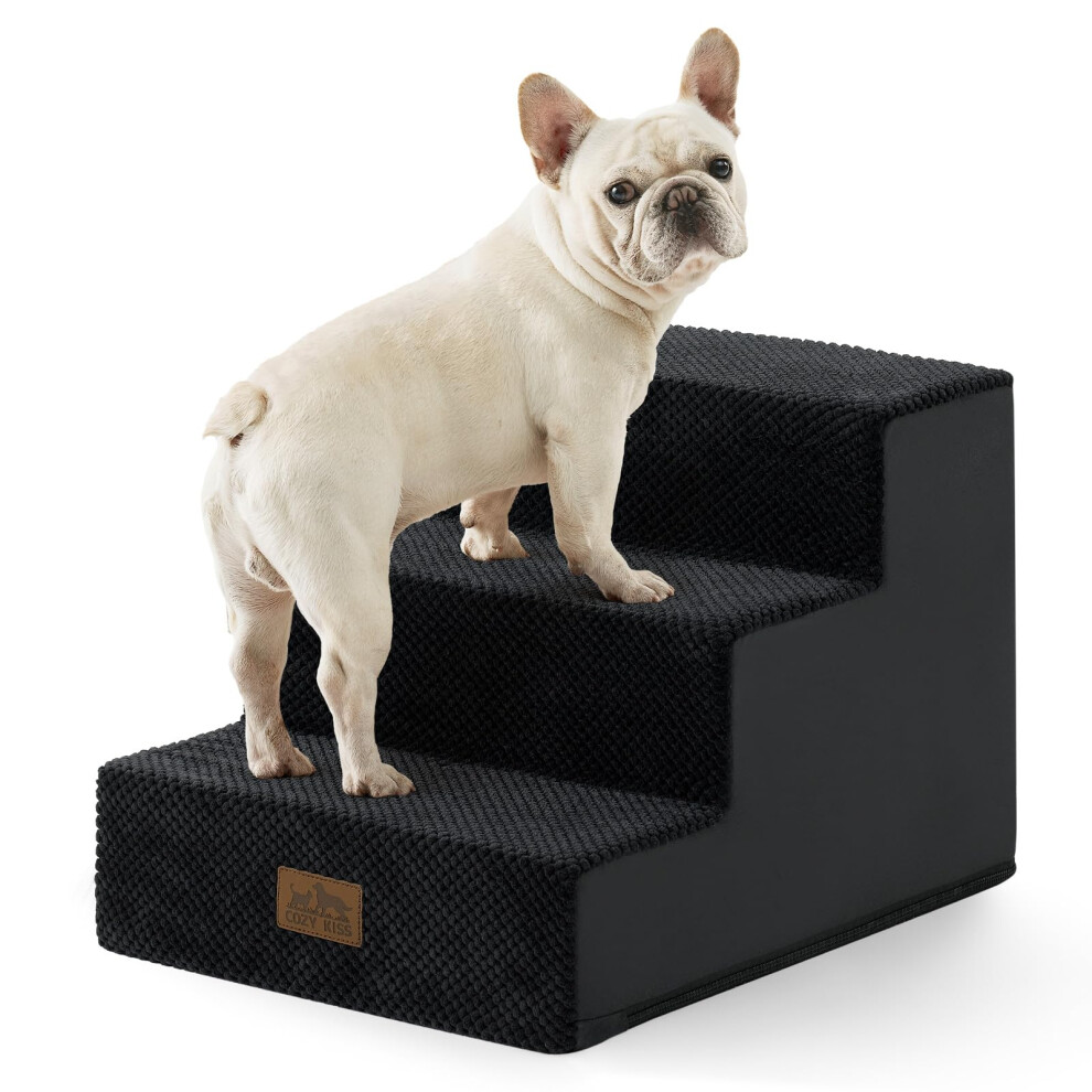 COZY KISS Wide Dog Stairs for Small Dogs, Pet Steps for Bed Sofa Car, Non-Slip Dog Stair for Old Cats, Puppy, Small Medium Dogs (Black, 40x45x35cm, 3)