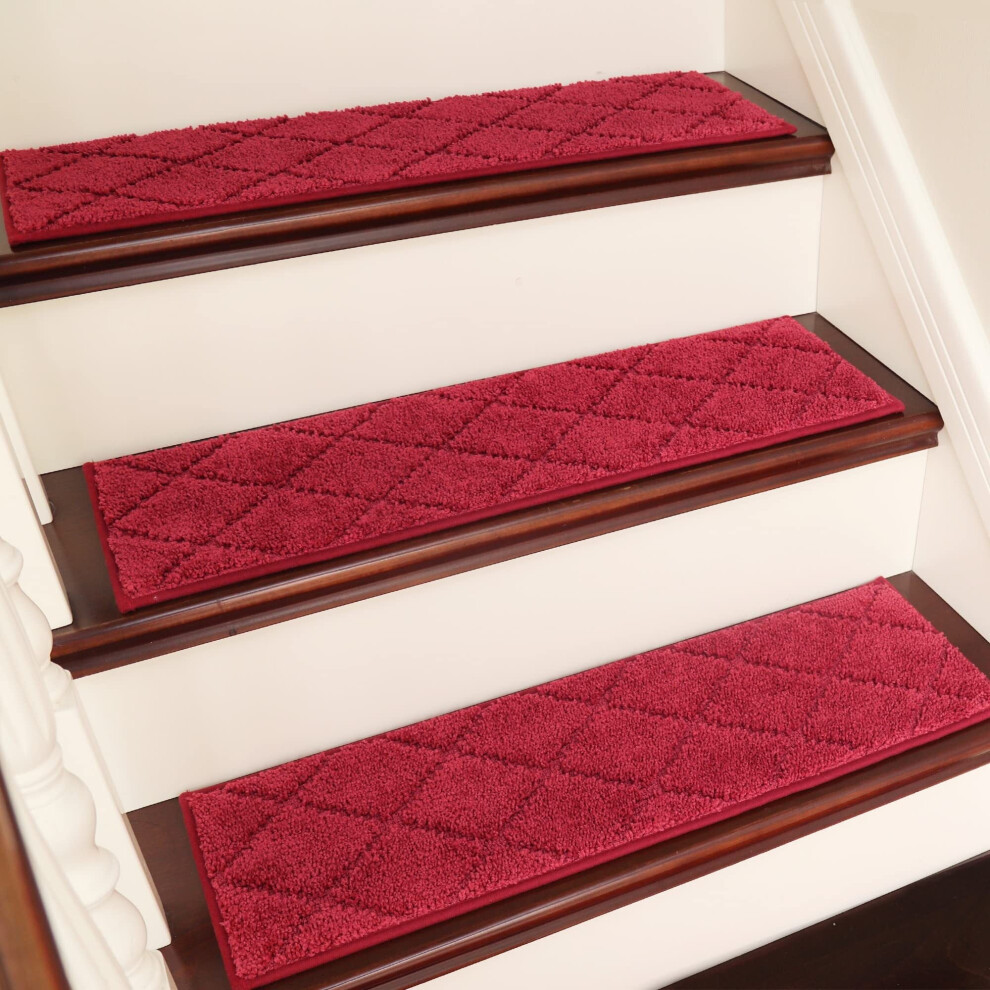 Non-Slip Edging Stair Treads 28"x9", 15pcs Indoor Carpet Mats for Wooden Steps, Kids & Dogs â 100% Polyester w/ TPE Backing