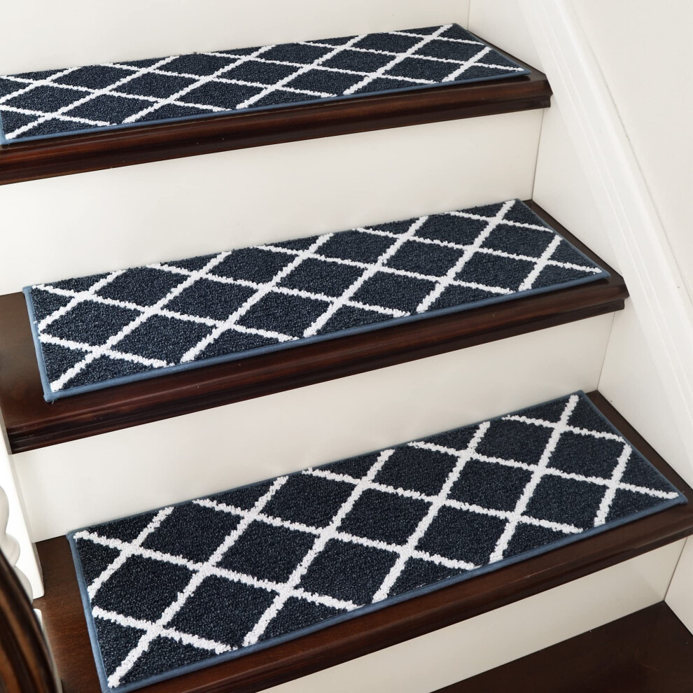 Tainini Clearance! Non Slip Carpet Stair Treads for Wooden Steps Indoor, Reusable Adhesive, Safe for Kids Elders Dogs (Navy)