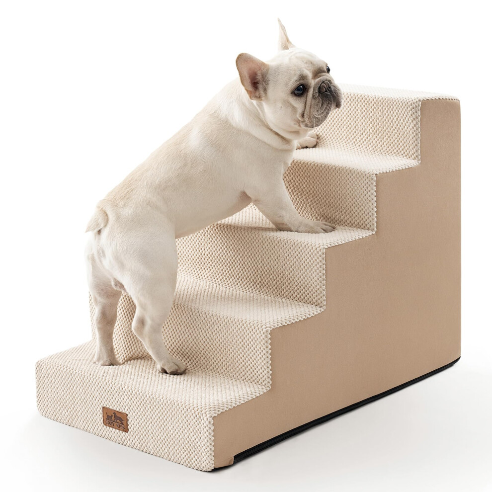 COZY KISS Wide Dog Stairs for Small Dogs, Pet Steps for Bed Sofa Car, Non-Slip Dog Stair for Old Cats, Puppy, Small Medium Dogs (Beige, 75x50x60cm, 5)