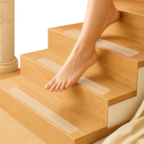 M.J COMFY-LIFE Stair Tread Pads Stair Mats Carpet Non-slip Step Protectors Reusable Stair Runner Rugs Covers Stair Protection Mats for Home Indoor Pets Kids Elders (Transparent, 30pcs-60x10cm)