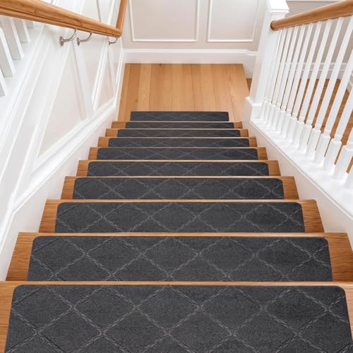 (Grey, 15PCS) Non-Slip Stair Tread Pads 76X20CM Carpet Stair Mats Self-Adhesive Step Protectors For Home Staircas