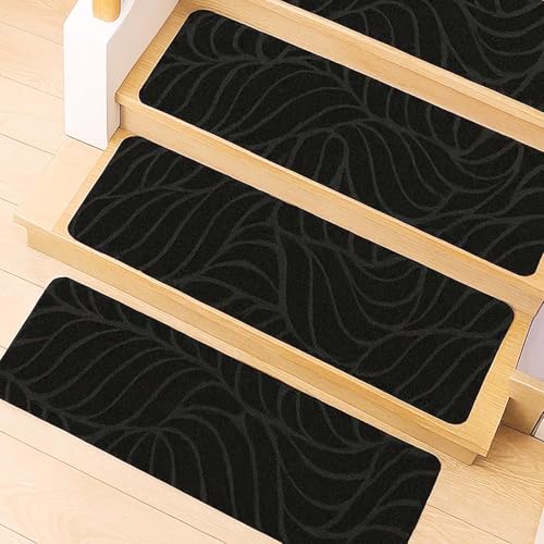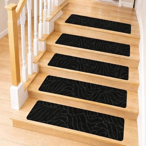 M.J COMFY-LIFE 15 PCS Stair Tread Pads Stair Mats Carpet Non-slip Step Protectors - 65x20cm Reusable Stair Runner Rugs Covers Stair Protection Mats for Home Indoor Pets Kids Elders (black, 15pcs)