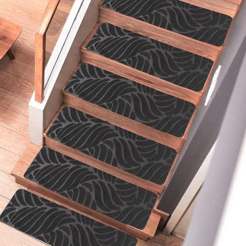 M.J COMFY-LIFE Stair Tread Pads Stair Mats Carpet Non-slip Step Protectors Reusable Stair Runner Rugs Covers Stair Protection Mats for Home Indoor Pets Kids Elders (Grey-Leaf Print, 15pcs-65x20cm)