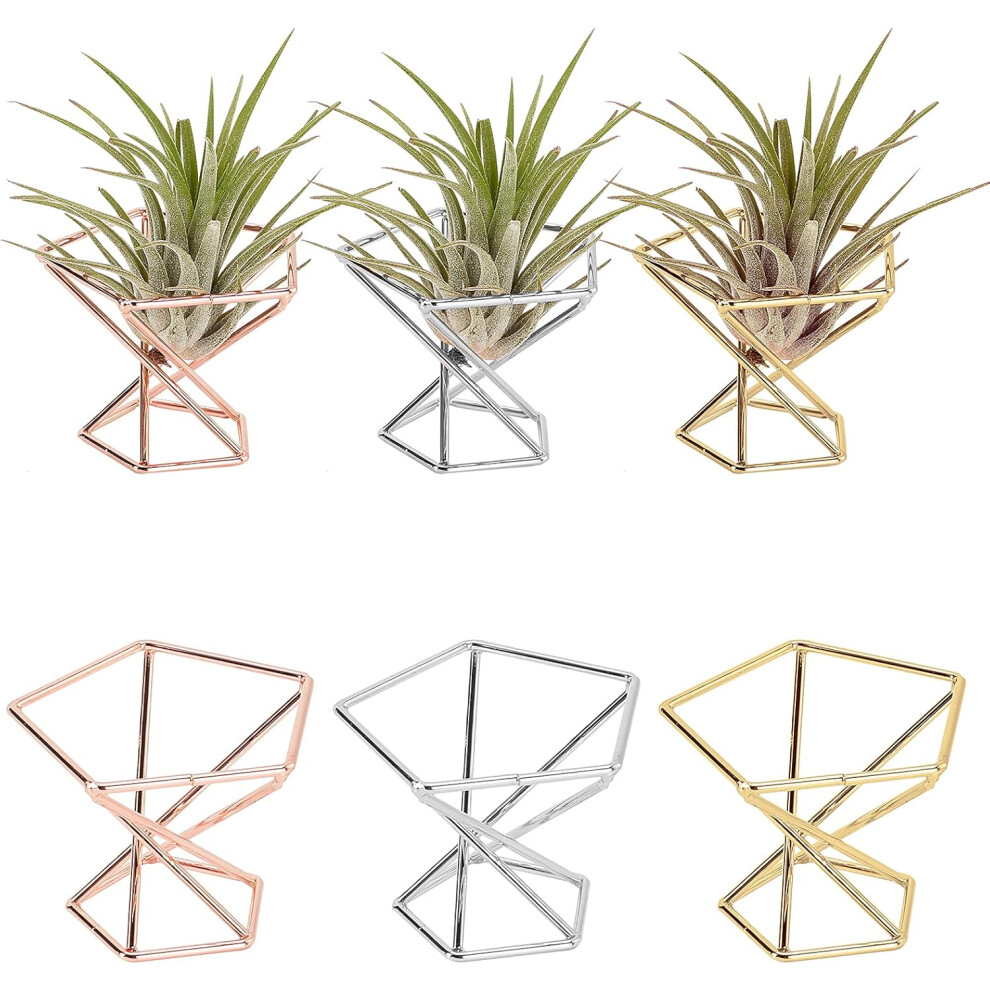 Hanging Air Plant Holder, Reusable Multi-Purpose Beauty Blender Stand, Diamond-Shaped Hollow Design, Metal Plants Stand For Aesthetic Appeal (Set Of 6