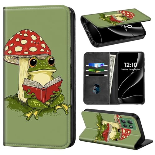 Phone Wallet for Moto G Power 2025 with Card Holder for Motorola Moto G Power 2025 Case PU Leather Folio with RFID Blocking Stand Phone Cover,Frog Read Book on a Red Mushroom