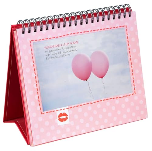 goldbuch Kiss table stand, photo frame for 12 photos in 10 x 15 format as a flip stand, picture frame with motifs, photo ring book for self-design, art print, red, approx. 18 x 16 x 2 cm