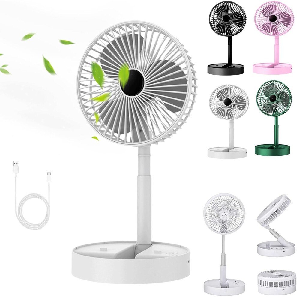 (White) Telescopic Folding Fan,3 Speed Telescopic Folding Fan,Rechargeable Folding Telescopic Desk Fan, Silent Stand Up Fan For Home