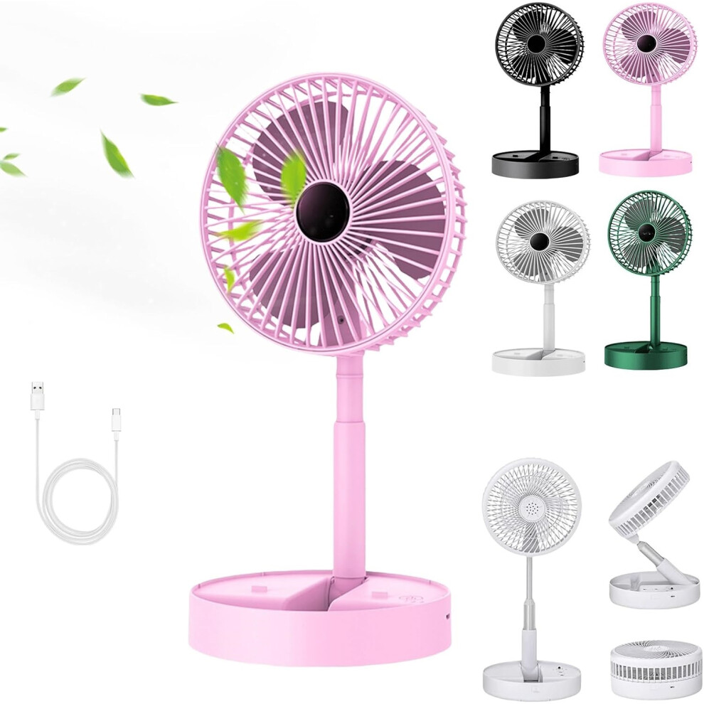 (Pink) Telescopic Folding Fan,3 Speed Telescopic Folding Fan,Rechargeable Folding Telescopic Desk Fan, Silent Stand Up Fan For Home