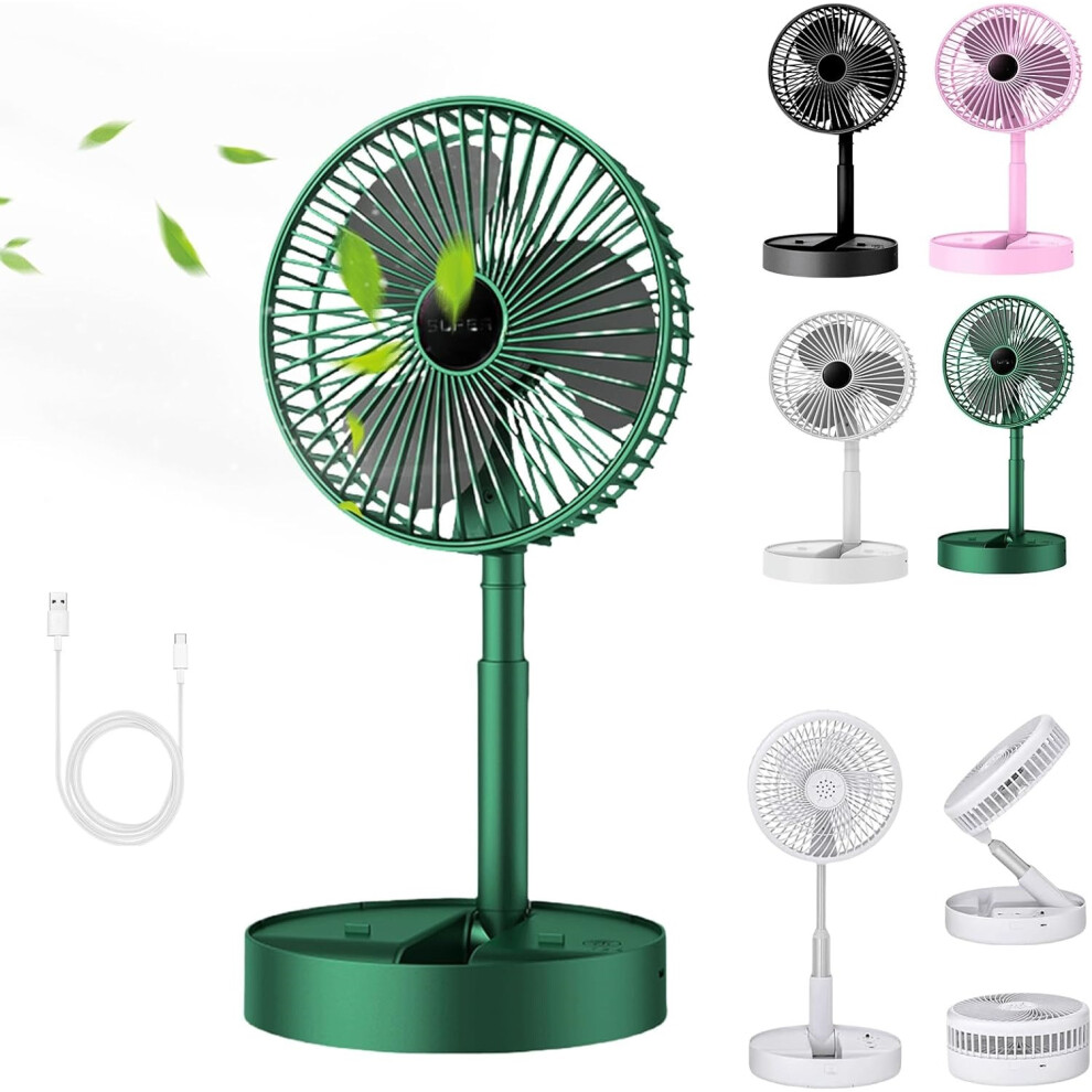 (Green) Telescopic Folding Fan,3 Speed Telescopic Folding Fan,Rechargeable Folding Telescopic Desk Fan, Silent Stand Up Fan For Home