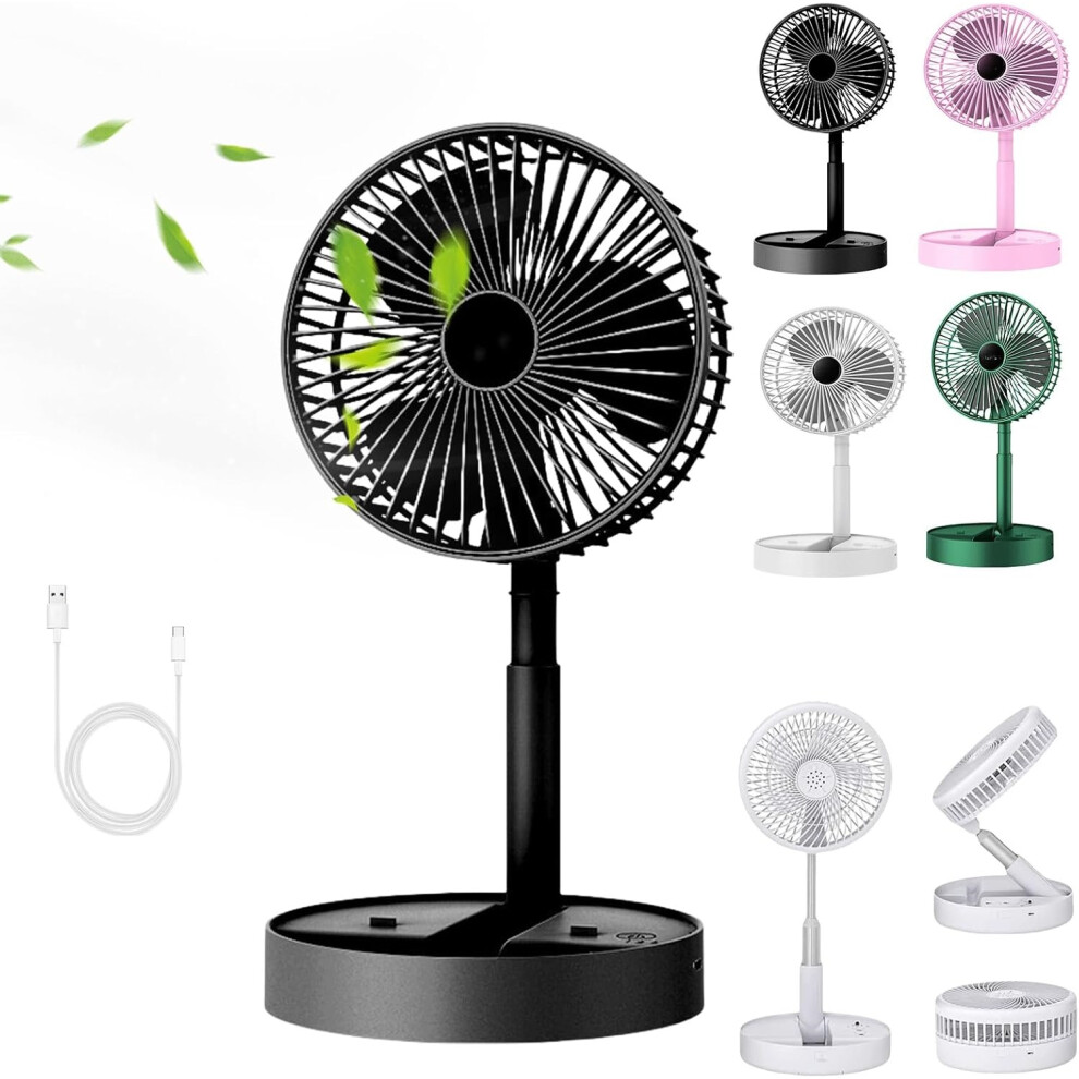 (Black) Telescopic Folding Fan,3 Speed Telescopic Folding Fan,Rechargeable Folding Telescopic Desk Fan, Silent Stand Up Fan For Home