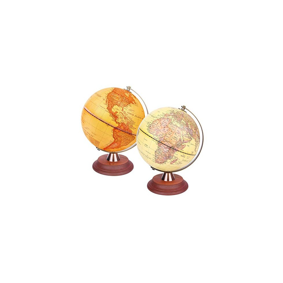 EXERZ Illuminated World Globe 20cm Antique Globe Wooden Stand Metal Arc, Light up LED Earth Globe Lamp, Vintage Colour Modern Map