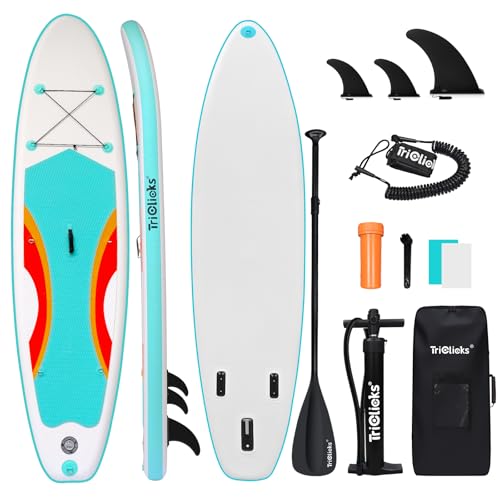 Triclicks 10ft Stand Up Paddle Boards Inflatable SUP Board Surfboard - Beginner's Kit. Adjustable Paddle, Air Pump With Pressure Guage, Fin, Repair Kit, Premium Leash & Rucksack (Style 10)