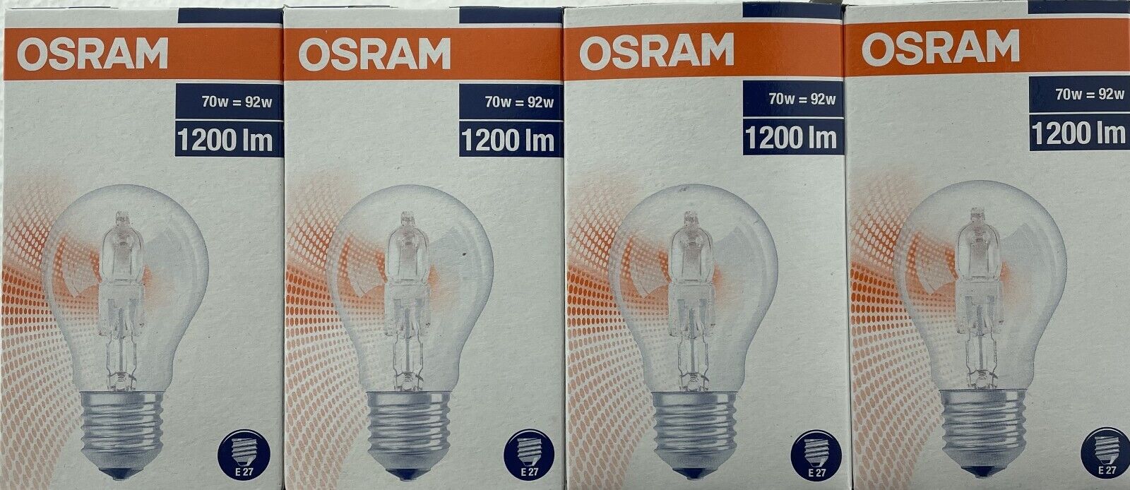 70 Watt ES Halogen GLS standard bulb lamp dimmable 1200lm Osram Pack of 4 E1