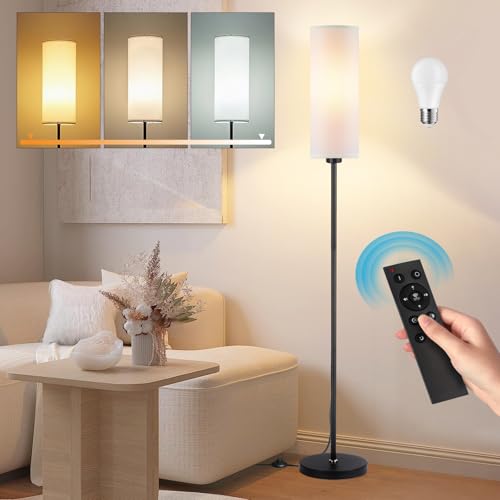 Seruno X Floor Lamp White Standing Lamp with Remote Control, Dimmable Color Temperatures, 9W Bulb Included, Modern Black Pole Standard Corner Lamp with Foot Switch for Living Room Bedroom Office