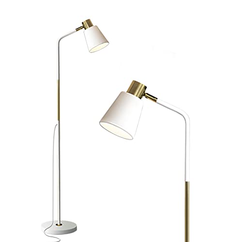 Floor Lamp, Industrial Floor Lamps Corner Lamp Rustic Farmhouse Standing Lamp, Adjustable Metal Heads Indoor Task Lighting Reading Floor Lamps for Living Room, Bedroom, E27 Socket (White)
