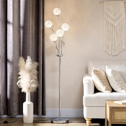 Rayofly Modern Crystal Fireworks Floor Lamps, Chrome Standing Lamp with Foot Switch, 8 Lights, 170cm, Glass Metal Tall Pole Tree Lighting for Living Room, Bedroom, Corner, Sofa