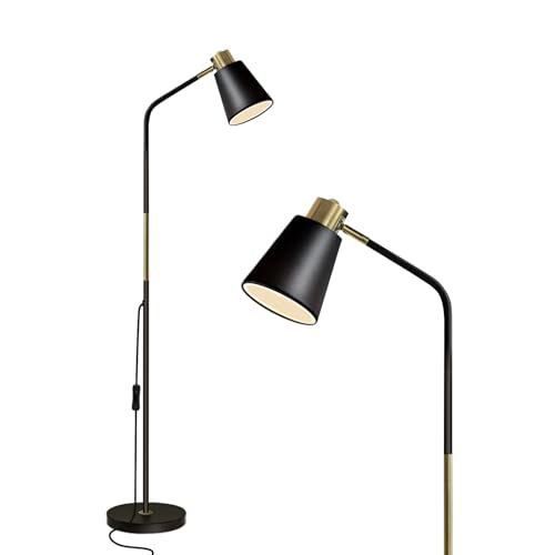 Floor Lamp, Industrial Floor Lamps Corner Lamp Rustic Farmhouse Standing Lamp, Adjustable Metal Heads Indoor Task Lighting Reading Floor Lamps for Living Room, Bedroom, E27 Socket (Black)