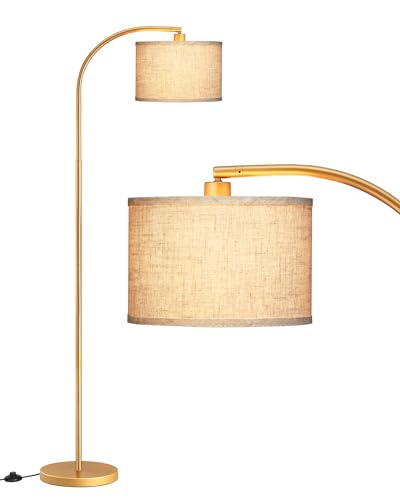 EDISHINE LED Floor Lamp, 63" Standing Lamp with Adjustable Linen Shade, Gold Metal Arc Light Pole, Modern Simple Floor Lamps for Living Room, Lounge, E27 Socket