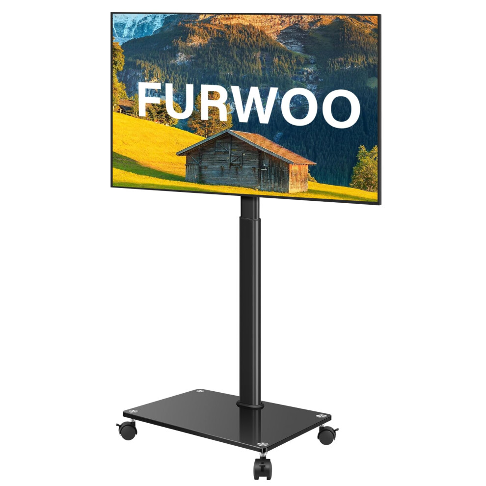 FURWOO Floor-Standing TV Stand with Wheels Rolling TV Stand with Swivel Mount for Living Room Meeting Room Portable Mobile TV Cart on Wheels for 27''-60'' TVs, Fit Corner, Outdoor
