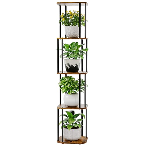 Bamworld 5 Tier Plant Stands Indoor, Corner Shelf Tall Plant Stand for Multiple Indoor Plants, Metal Tiered Display Stand for Living Room Balcony Garden Patio, Brown