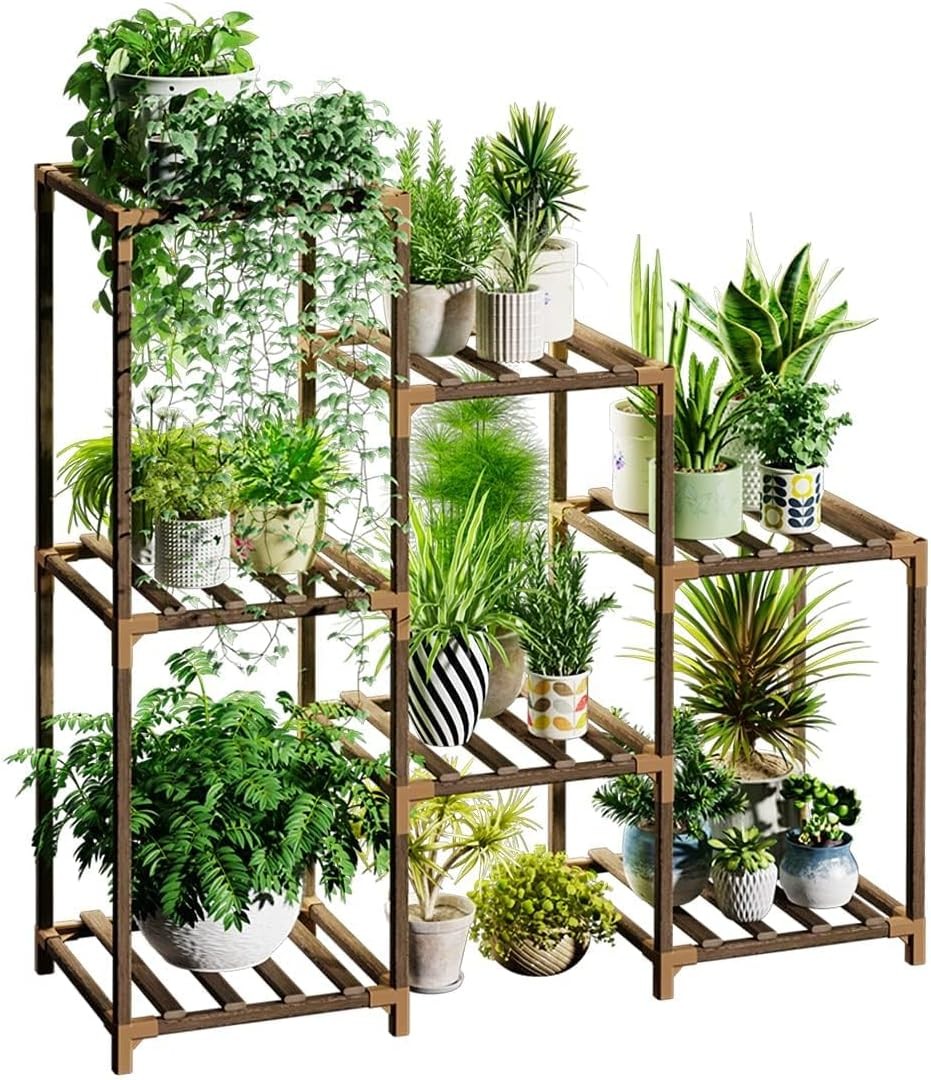 Plant Stands for Indoor Plants, Wood Outdoor Tiered Plant Shelf for Multiple Pl