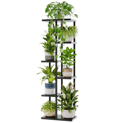 Bamworld 6 Tier Plant Stands Indoor, Corner Shelf Tall Plant Stand for Multiple Indoor Plants, Metal Tiered Display Stand for Living Room Balcony Garden Patio, Black
