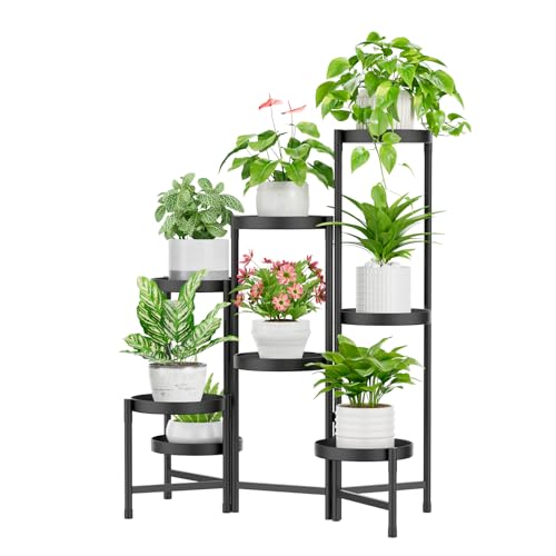 iDavosic.ly 7 Tier Plant Stand Indoor Tall, Corner Metal Tiered Plant Stands Outdoor for Multiple Plants, Folding Iron Flower Display Holders Rack Shelf, Black