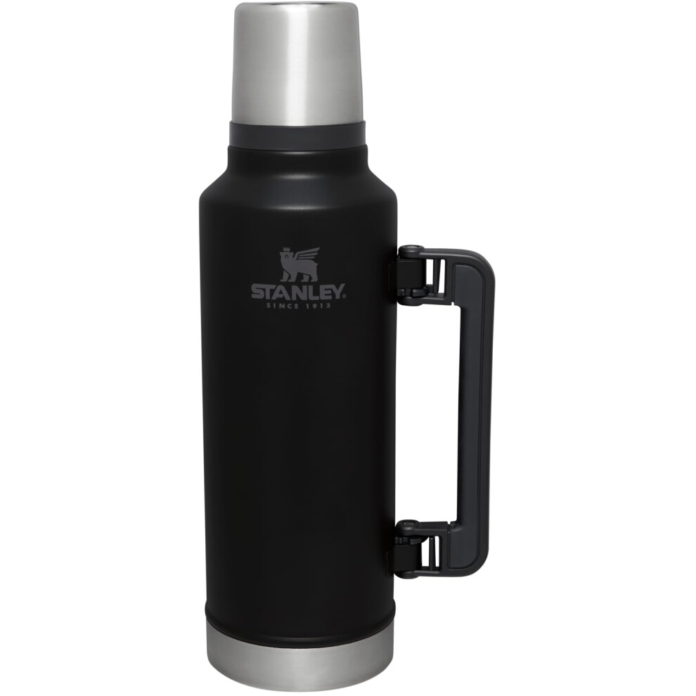 Stanley Classic Vacuum Bottle 1.5 qt | Wide Mouth with Cup Lid | Keep Drinks Hot or Cold | Insulated Stainless Steel Thermos | BPA-Free | Black 2.0